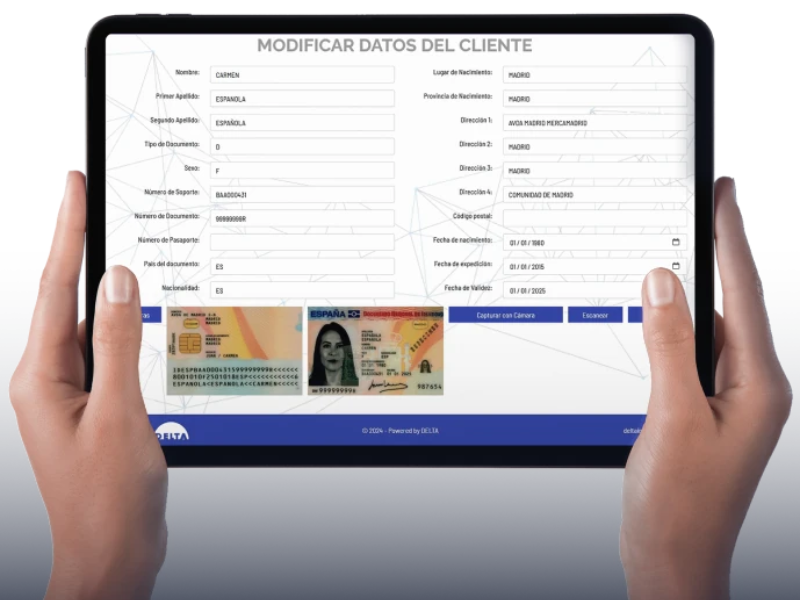 Ahora, puedes mejorar este proceso y estar al día de la nueva normativa que entrará en abril de 2026: DELTA ID es la solución líder en reconocimiento y verificación de documentos de identidad de más de 190 países, diseñada para prevenir el fraude y optimizar los procesos de registro en cualquier sector. Su tecnología basada en Inteligencia Artificial y Machine Learning permite la lectura automática de ID’s desde cualquier dispositivo, ya sea desktop o cloud, garantizando una integración rápida y eficiente con tu sistema de gestión